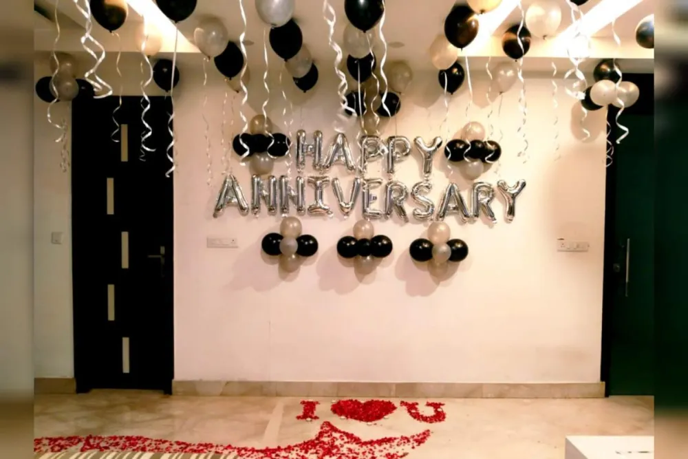 Home anniversary décor, hotel room surprise, dinner backdrop, or private event setup.